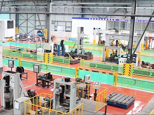 富華重工擁有12個(gè)大型生產(chǎn)車間,工廠總占地面積達(dá)1,000,000平方米。公司主要生產(chǎn)設(shè)備采用世界知名企業(yè)品牌,所有關(guān)鍵加工和熱處理和熱處理工藝屬于世界領(lǐng)先水平,主要關(guān)鍵零部件橋殼、齒輪、制動(dòng)器、半軸等都是自制件,有效地保證了產(chǎn)品的質(zhì)量。