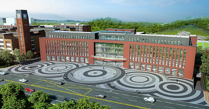 走進(jìn)廣東外語(yǔ)外貿(mào)大學(xué)附設(shè)清遠(yuǎn)外國(guó)語(yǔ)學(xué)校,紅色的外墻成為這所學(xué)校的主色調(diào)。廣外清遠(yuǎn)外校項(xiàng)目占地面積約232畝,總建筑面積約26萬(wàn)平方米,學(xué)校總體建設(shè)以“設(shè)計(jì)學(xué)校就是設(shè)計(jì)未來(lái)”為理念,配備有室內(nèi)體育館、恒溫游泳館、600人報(bào)告廳,室內(nèi)外演出劇場(chǎng)、科創(chuàng)教育空間、活動(dòng)室、國(guó)際田聯(lián)標(biāo)準(zhǔn)運(yùn)動(dòng)場(chǎng)等教學(xué)設(shè)施,為學(xué)生提供優(yōu)質(zhì)、舒適的學(xué)習(xí)生活環(huán)境。