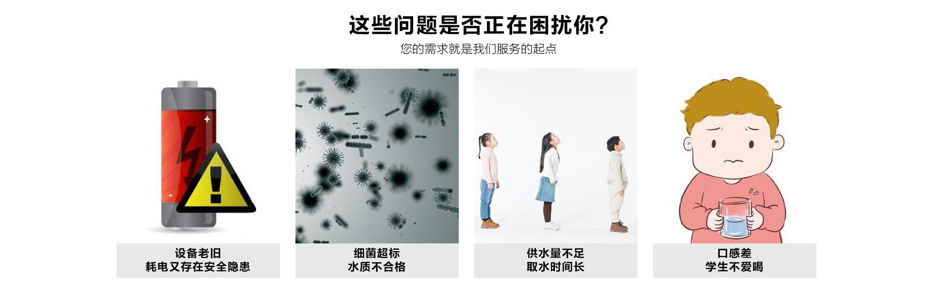 不同的飲水點可根據(jù)實際使用情況,安裝管線機(jī)或飲水設(shè)備或開水器,使用戶能喝上開水、溫開水、純凈水等,來滿足不同場景的飲水需求;