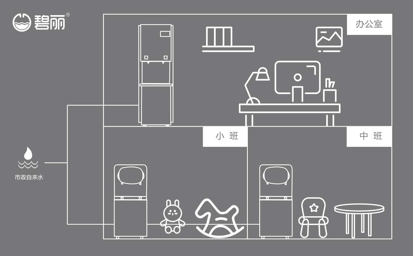 售后維護、更換濾芯方便,解決因場地限制無法滿足同時供應多個飲水點的難題;