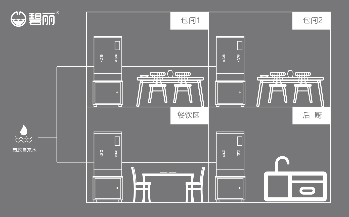 碧麗商用反滲透純水機將自來水集中處理后,把優(yōu)質(zhì)的純凈水通過專用的供水管道輸送到各飲水點;