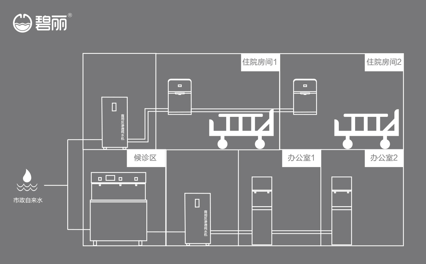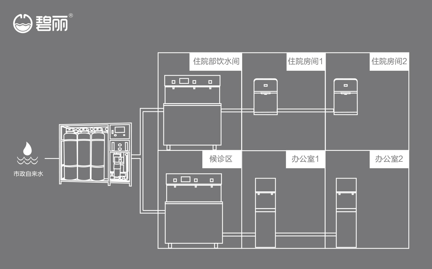 碧麗商用反滲透純水機將自來水集中處理后,把優質的純凈水通過專用的供水管道輸送到各飲水點;