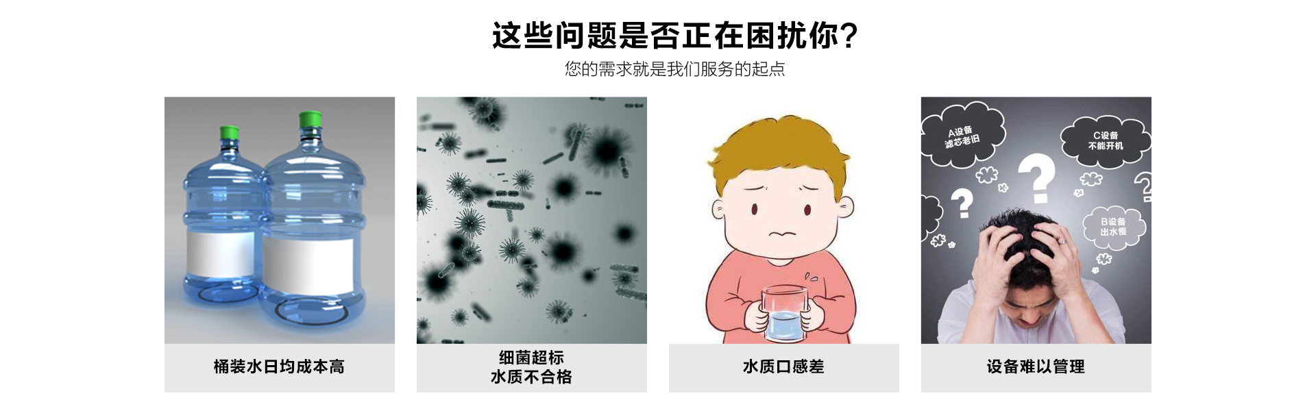 不同的飲水點(diǎn)可根據(jù)實際使用情況,選擇租賃管線機(jī)或飲水設(shè)備或開水器,使用戶能喝上開水、溫開水、純凈水等,來滿足不同場景的飲水需求;
